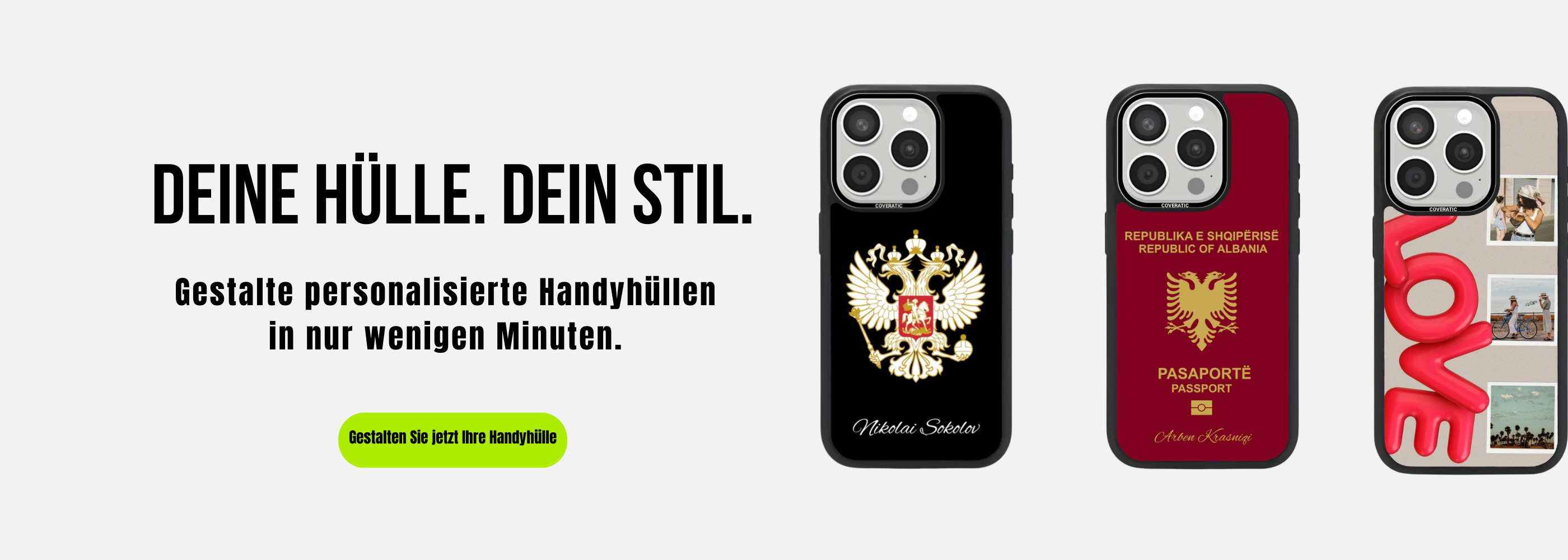 Mit COVERATIC gestalten Sie Ihre Premium-Anti-Shock-Hülle ganz individuell.